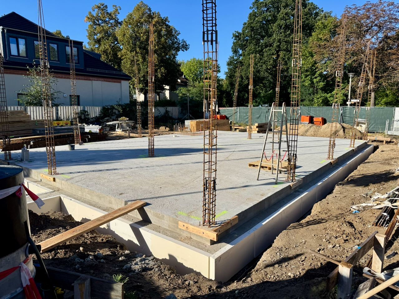 Mit dem Bau der geplanten Gewerbeeinheit startet zugleich der letzte Bauabschnitt im Spreequartier. Die Bodenplatte wurde im August gegossen und bildet die Basis für ein kleines, vielseitig nutzbares Gebäude.