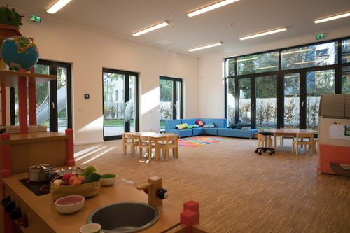 Die im Jahr 2017 fertiggestellte KITA im Kaskelkiez in Lichtenberg im Wohnquartier Victoria-Ensemble die auf einer Gesamtfläche von ca. 580 qm mit 70 modernen KITA Plätzen ausgestattet und wird von unserem zuverlässigen Partner MasaKids betrieben. Die KITA zeichnet sich durch großflächige und helle Räumlichkeiten aus, in denen sich die Kinder austoben können. Die Gruppenräume im EG haben jeweils einen gesonderten Eingang in den Garten. Als besonderes Highlight begeistert die Kinder eine Tunnelrutsche von der Dachterrasse aus in den großen Freibereich der KITA. Eine begrünte Dachterrasse im 1. OG, die mit Spielgeräten ausgestattet ist, lädt ebenfalls zum Spielen ein.
